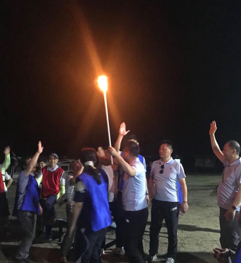 夜幕四合,工會(huì)主席王志凌點(diǎn)燃了火把,拉開(kāi)了篝火晚會(huì)的序幕。在輕快歡快的音樂(lè)節(jié)拍下,紅藍(lán)兩隊(duì)隊(duì)員們手拉著手、肩并肩圍著熊熊篝火歡呼著、舞動(dòng)著、跳躍著、歌唱著,隊(duì)員們完全沉浸在歡樂(lè)的海洋里……當(dāng)《朋友》之歌響起時(shí),在場(chǎng)所有人一起放聲歌唱,將本次活動(dòng)的氣氛推向高潮!