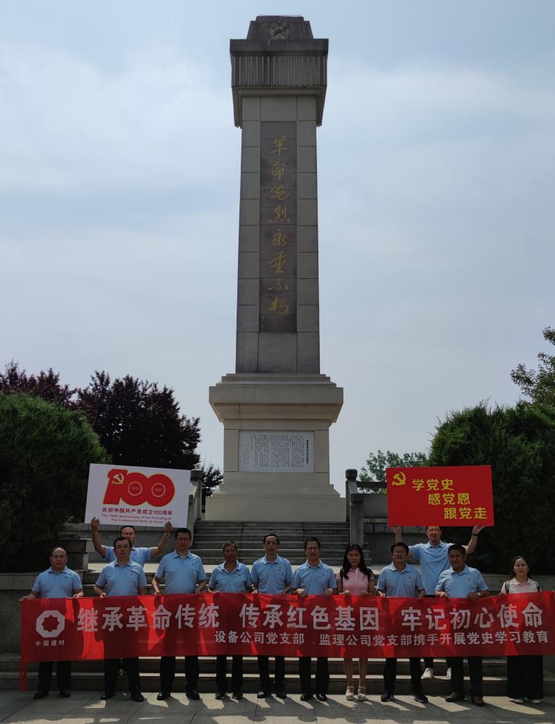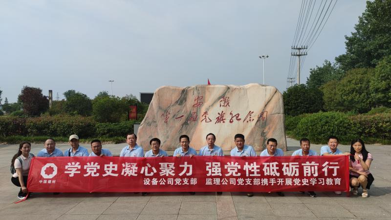 為了慶祝中國共產(chǎn)黨成立100周年,落實黨史學習教育工作計劃, 6月11日,我院設備公司和監(jiān)理公司黨支部在中共安徽第一面黨旗紀念園和中國建材(合肥)技術(shù)中心工程項目現(xiàn)場開展主題為“學黨史、感黨恩、跟黨走”黨史學習教育實踐活動,支部黨員、入黨積極分子和部分中層以上干部參加了此次活動。
