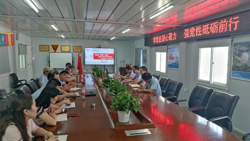 參觀項目現(xiàn)場后,在項目部會議室由設備公司黨支部書記高山林主持召開了黨史學習教育分享和交流會。會上,同志們先逐一做了簡單的自我介紹,隨后,監(jiān)理公司總經(jīng)理何宏濤和設備公司總經(jīng)理許濤分別介紹了各自公司的企業(yè)現(xiàn)狀、業(yè)務范圍、優(yōu)勢劣勢和企業(yè)特點,對照合肥院“十四五”規(guī)劃精神,大家對各公司“十四五”規(guī)劃及落實情況進行了交流討論;何宏濤和高山林分別介紹了各自黨支部開展黨史學習教育的情況和分享了經(jīng)驗體會,參會同志分享了黨史學習教育的收獲,交流了本次活動的收獲和體會;最后,高山林對本次活動作了總結(jié),闡明了活動意義,肯定了大家昂揚向上的熱情和積極學習的態(tài)度,并表示本次活動開展得很成功,起到了“學黨史凝心聚力,強黨性砥礪前行”的作用,以后將多開展類似的支部聯(lián)合活動。